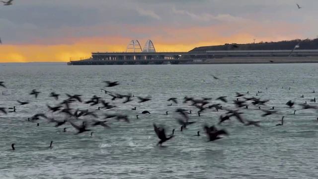 Крымский мост и птицы в гармонии заката