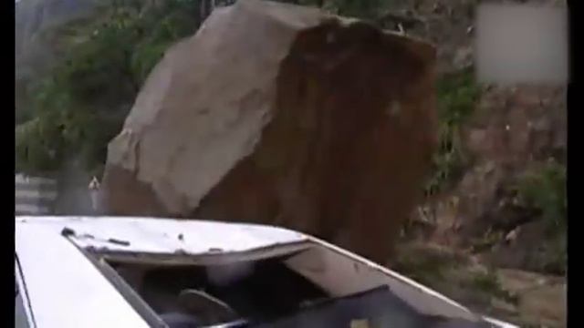 Автомобиль попал в оползень и едва не был раздавлен огромным камнем во время шторма в Тайване