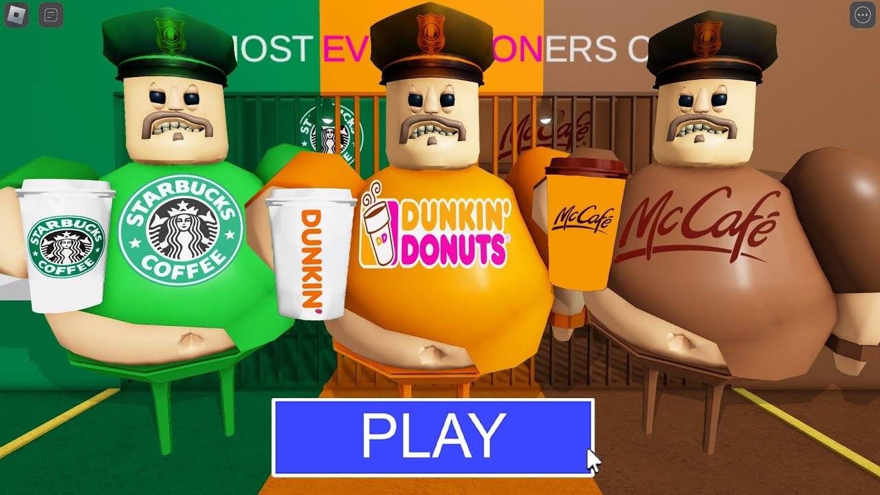 Старбакс БАРРИ VS пончиков Данкин VS БАРРИ из МакКафе в BARRY'S PRISON RUN! в РОБЛОКС(#ROBLOX)