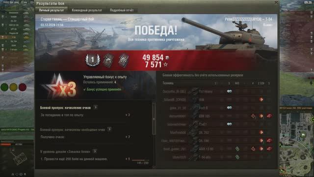 И полторы минуты боя не прошло, как две ЛТ в ангар отправил. 20241203_2158_ussr-R40_T-54_127_japort
