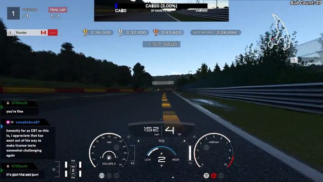 Its no wonder they made this the final test in Gran Turismo 7. An old racing car on slicks on a wet Spa where if you go out of the line, its pretty much instant death. Took SO many attempts to do this, was at this for well over an hour. Persistence however, paid off. No, this isn't the fastest run out there, not even close. Yet its a Gold, so I'll take it. S-10 - Porsche 917K '70 - One Lap around Spa-Francorchamps Gold time is 2:26.000 Played on PlayStation 4. Can't afford a PS5 right now. Catch live on Twitch - https://www.twitch.tv/ThunderTHR ---------------------------------------------------------------------------------------------------------- Support the channel on Patreon! https://www.patreon.com/ThunderTHR Thank you to the following Patreon Supporters; Infernothefox - https://www.youtube.com/user/InfernotheFox Jumpskorpia - https://www.youtube.com/user/chrisiuratnik Kai M - ??? RKD - https://www.youtube.com/user/VikingArelius ----------------------------------------------------------------------------------------------------------- SUBMIT CLIPS FOR HIGHLIGHT REEL - https://docs.google.com/forms/d/e/1FAIpQLSdtLgL9eBWRIprt-9W3QgMWvE4UssqJzNFkrPpT-r32rGJkgA/viewform Discord link - https://discord.gg/9aFEbbQvbT Follow on Twitch!: https://www.twitch.tv/ThunderTHR Follow on Twitter!: http://www.twitter.com/Thunder_THR Game List: https://docs.google.com/spreadsheets/d/1oK3FpYTup9KB46EK7UhKJhMYq_wsjh3rMsu45WlENJs/edit?usp=sharing