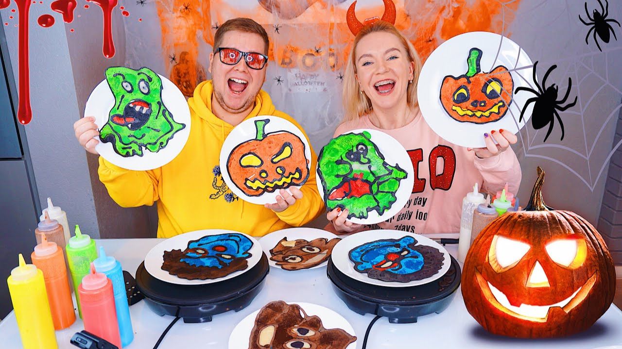 БЛИННЫЙ ЧЕЛЛЕНДЖ на ХЭЛЛОУИН ☠️ HALLOWEEN PANCAKE ART CHALLENGE DIY // Нарисуй и Испеки