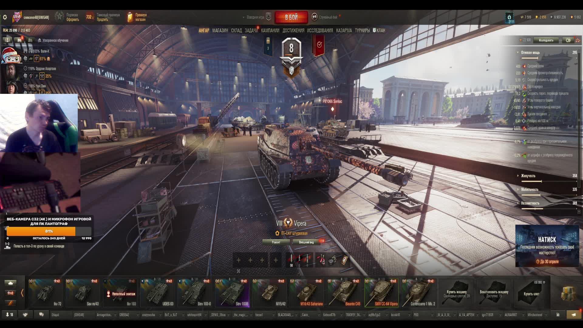 Привет! Добро пожаловать на стрим, самая большая поддержка для меня сейчас это лайк и подписка, поэтому если ты поставишь палец вверх и нажмешь на эту большую красную кнопку я буду очень благодарен мой Trovo https://trovo.live/dmitrypolyakow2010 донат https://www.donationalerts.com/r/gkqqh Группа в ка https://vk.com/public200923194 Telegram https://t.me/cencovo48 дискорд https://discordapp.com/channels/56952... ка https://vk.com/id90471262 мой кланhttps://lesta.ru/clans/wot/450150/ пк Характеристики Процессор AMD Ryzen 7 2700X Материнская плата MSI B350 TOMAHAWK Оперативная память A-Data XPG Gammix D10 [AX4U320016G16A-DR10] 32 ГБ Видеокарта GIGABYTE GeForce GTX 1070 1582MHz PCI-E 3.0 8192MB 8008MHz 256 bit DVI HDMI HDCP WINDFORCE OC rev. 1.0 Блок питания Thermaltake Москва 850W Монитор LG 29WP60G-B [29WP60G-B.ARUZ] клавиатура Defender Doom Keeper GK-100DL (45100) мышь A4Tech Bloody P81s Starlight Микрофон Trust Mico USB Microphone (20378) Веб-камера Defender C-090 Black музыкального центра LG XBOOM DM5360K наушники Sven AP-G888MV Корпус Middle Tower AeroCool "BattleHawk