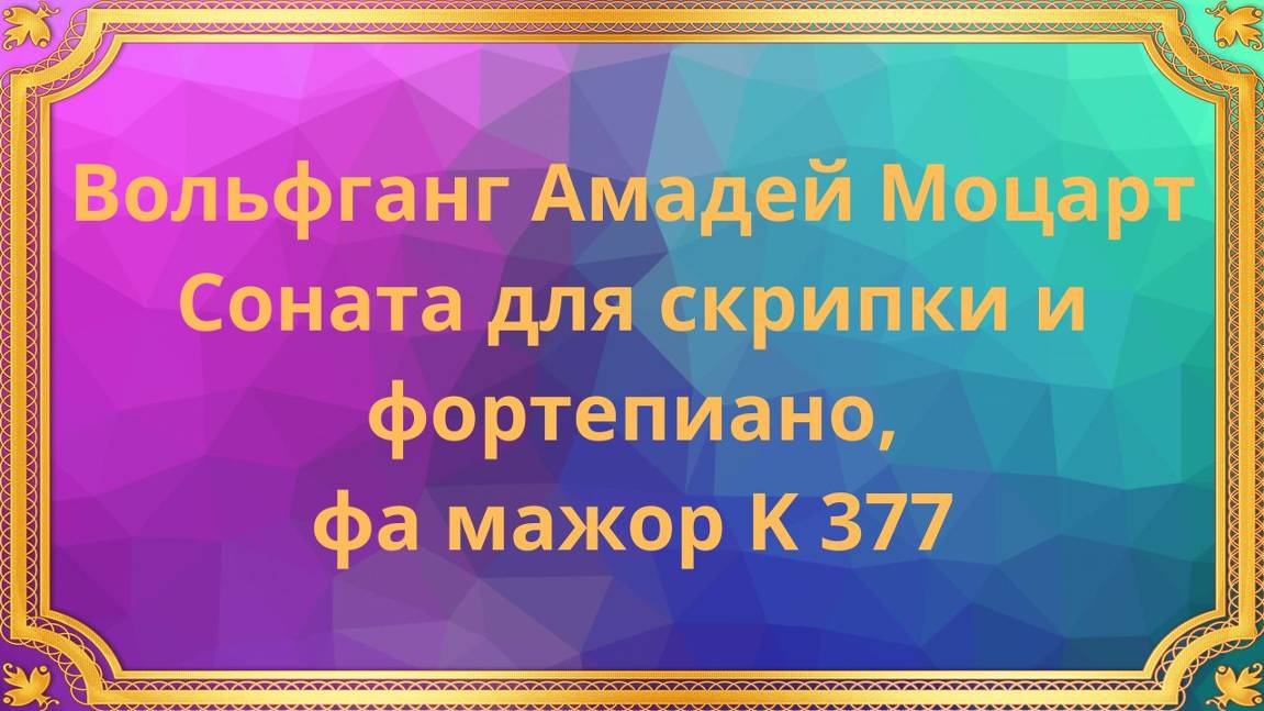 Вольфганг Амадей Моцарт Соната для скрипки и фортепиано, фа мажор K 377