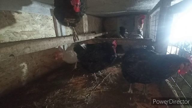 Деревня/ куры/ восхищаюсь Ильнуром/ кормушки прохудились.