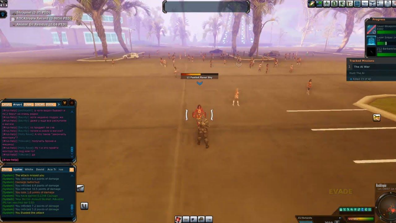 Entropia Universe. Прилетел на Rocktropia. Девок пострелять и со складом разобраться