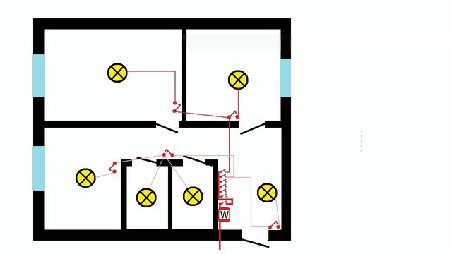 Предлогается эл.схема по ведению эл.монтажа в любых помещениях,она позволяет убрать все разветвительные коробки с квартиры,надежность этой технологии проверена на практике в течении 30 лет.даны практические советы профессионалами с 30летним стажем