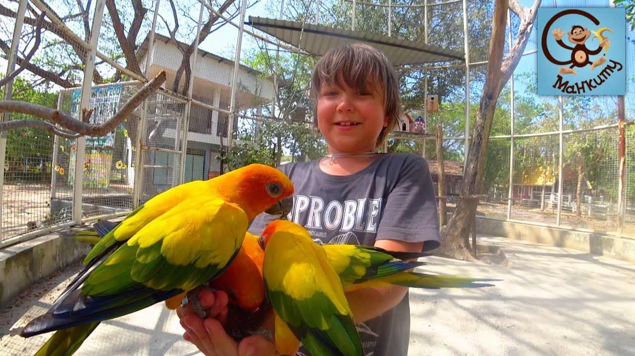 Манкиту отправились на прогулку в Зоопарке в Таиланде.