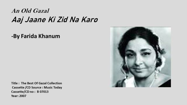 An Old Gazal --Aaj Jaane Ki Zid Na Karo-By Farida Khanum
