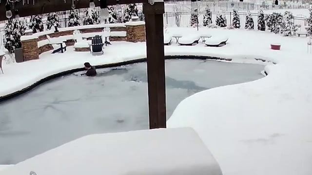 Женщина прыгнула в замерзший бассейн, чтобы спасти собаку