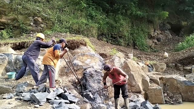 Строительство, самые сильные шахтёры разбивают камни вручную