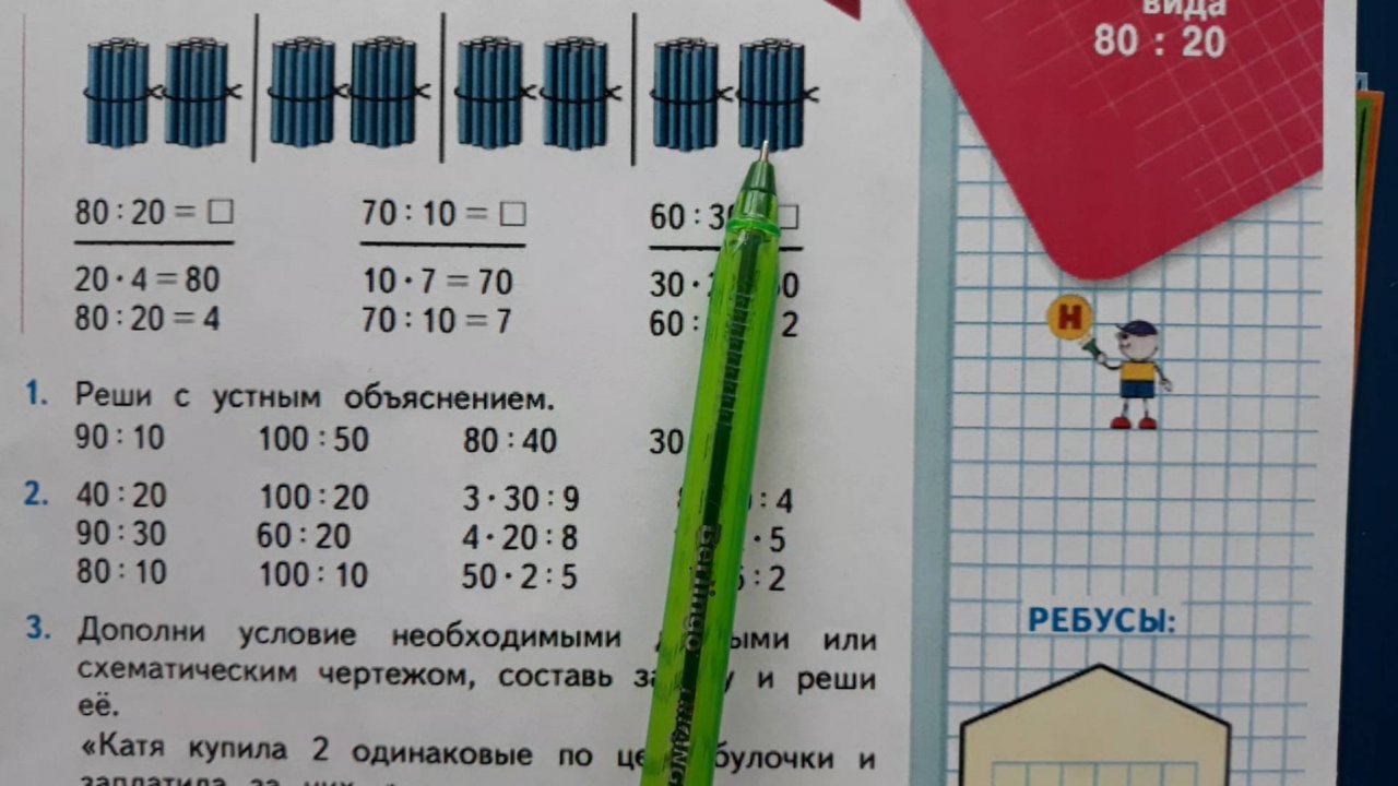 Математика 3 класс, 2 часть., стр.5. Деление круглых чисел вида: 80:20