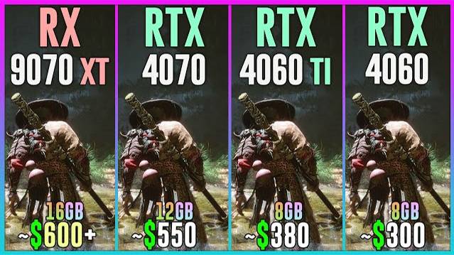 RX 9070 XT vs RTX 4070 vs RTX 4060 TI vs RTX 4060 - Test in 25 Games 2025 1080p, 1440p, 2160p, 4k, 2k, dlss 4, dlss 3.7, fsr 4, fsr 3.1, ray tracing, frame generation, native, Multi Frame Generation ⏩GPUs & Amazon US⏪ (Affiliate links) 💥RX 9070 XT 16GB: https://amzn.to/4bxyEKX 💥RTX 4070 12GB: https://amzn.to/446Zqpd 💥RTX 4060 TI 8GB: https://amzn.to/3NldmFR 💥RTX 4060 8GB: https://amzn.to/3NskoYp ⏩PC Setup⏪ - OS: Windows 11 Professional 64-bit - CPU: Ryzen 7 9800X3D - MB: GIGABYTE X870 AORUS Elite - RAM: Corsair Vengeance RGB 32GB DDR5 - 6400 Mhz CL32 💁♂️ When you buy from my Amazon links, I earn a small commission at no extra cost to you, plus you support the channel thank you.