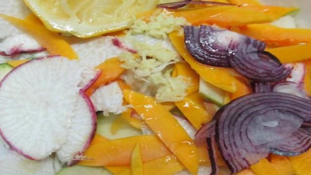 Капустный салат в легком маринаде. Это невероятно вкусный, яркий и незаурядный рецепт салата из капусты. Капусту можно использовать пекинскую, белокочанную. Салат можно приготовить заранее. Ингредиенты: Капуста белокочанная - 250 гр., Имбирь (корень) - 2 см., Редька - 0,5 шт., Тыква - 2 ломтика, Лук красный - 1 шт., Кабачок - 0,5 шт., Яблоко - 0,5 шт., Сок лимонный - 1/4 шт., Мед натуральный - 1 чай.лож., Соль - по вкусу, Перец черный - по вкусу, Мед натуральный - 1 чай.лож., Масло оливковое - по вкусу, Благодарим за просмотр! Подписывайтесь на канал🍕 Поделитесь своим мнениенм о рецепте в комментариях!