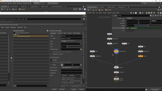 Lessons & Project Files: https://www.sidefx.com/tutorials/houdini-digital-assets/ Start with an existing network that builds a section of a fence then package up the nodes into a Houdini Digital Asset. Learn how to save the asset to disk and how to add your first parameter using the Type Properties panel.
