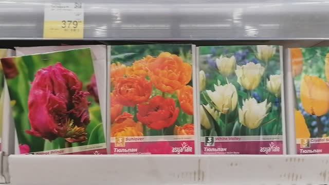 Тюльпаны, нарциссы, крокусы и прочие луковичные в Московском магазине Лента в сентябре 2022