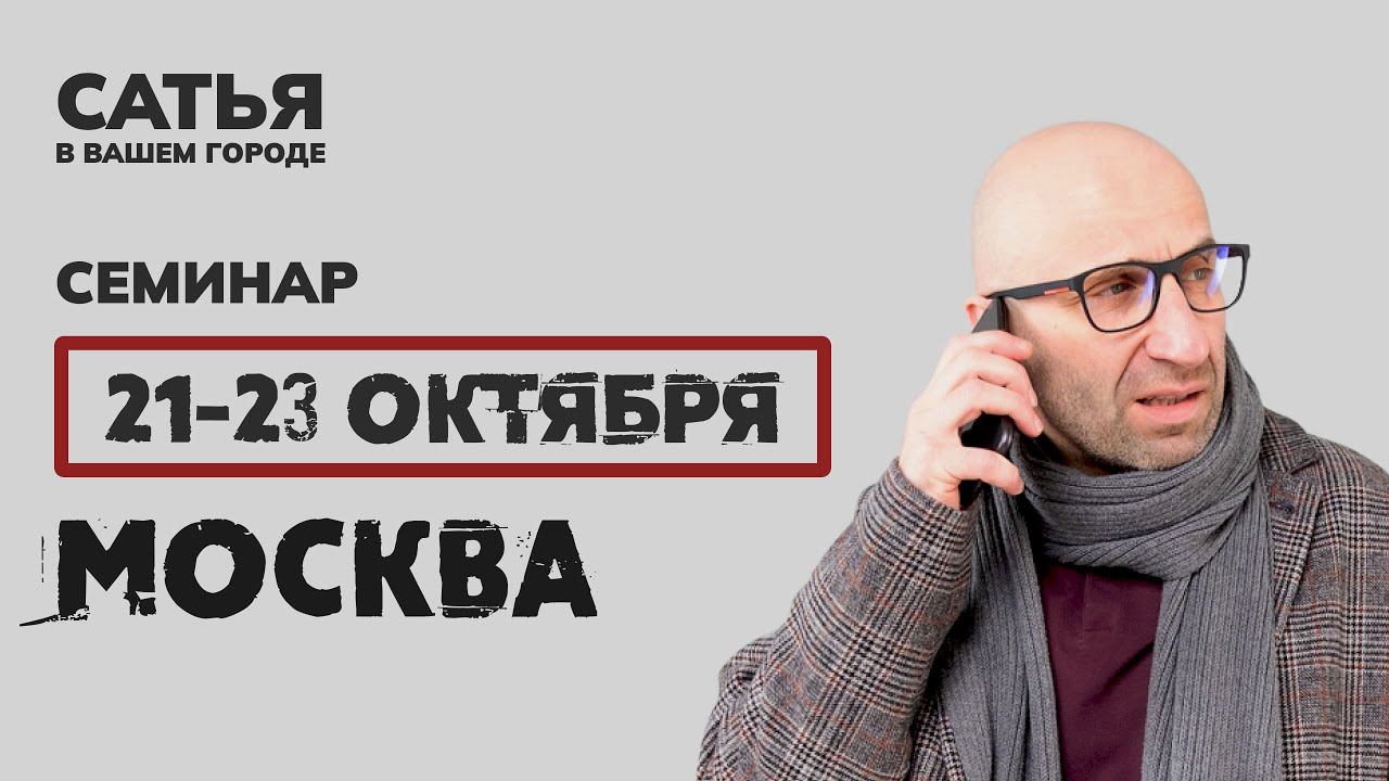 21-23 октября Сатья в Москве. Новый, уникальный формат. Дорогие друзья, Сатья приглашает вас на лекции о семейных отношениях 21 -23 октября в Москве. Не знаешь кто такой Сатья? 4,5 миллионов подписчиков в соцсетях и YouTube. Входит в топ 10 лидеров доверия россиян среди блогеров. Автор 17 книг по семейной психологии. Провёл более 7000 консультаций для мужчин, женщин и пар. 29 лет женат на одной женщине, а это уже талант. Такого семинара Вы ещё не видели. Это Новый, уникальный формат. - Никаких энциклопедических и абстрактных фраз - Без оторванных от жизни примеров и ситуаций -Только знания, которые реально применить прямо здесь и сейчас! С ответами на вопросы гостей семинара С разбором конкретных ситуаций из зала С пошаговым планом действий под определённую проблему в стиле Сатьи - весело и жизненно! Купить билеты на семинар Сатьи: https://taplink.cc/satyaexpert?utm_source=youtube_satya Заказ книг на сайте: https://www.satyabook.ru/ Получить консультацию психолога: https://satya.expert/specialist ВКонтакте: https://vk.com/lekciyasatyadas Ссылки на другие соц.сети : https://taplink.cc/satya.expert?utm_source=youtube_satya #сатья #сатьядас #нескучнаясемейнаяпсихология #семейнаяпсихология #семья #любовь #сатьяэксперт #постороениеотношений #детскоевоспитание #женскаясамооценка #мужскоеиженское #женщинаиработа #счастливаясемья #сатьявмоскве #сатьямосква #сатьяновыйформат #чтопосетитьвмоскве #кудасходитьвмоскве