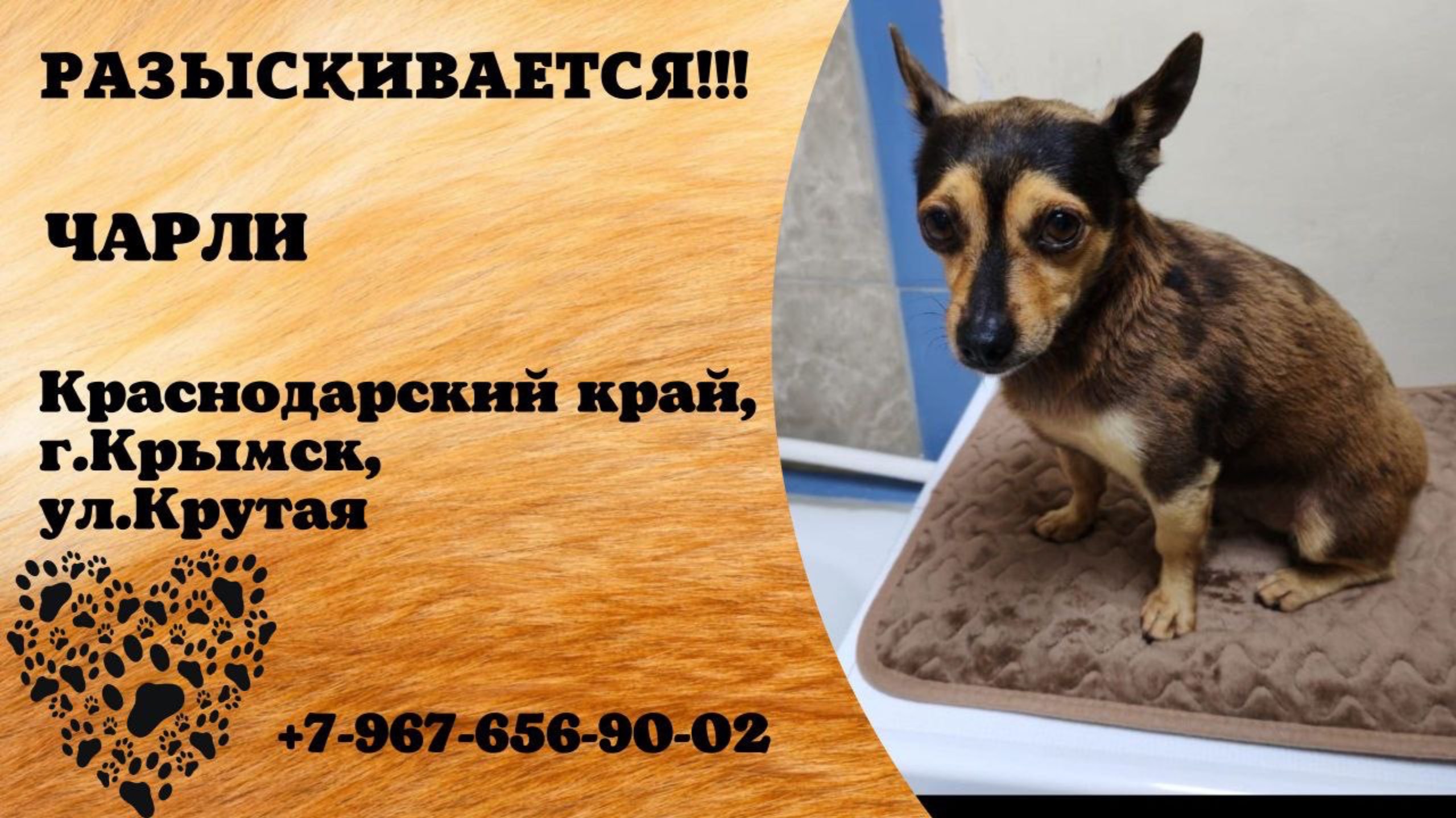 Пропала собака! ЧАРЛИ. Краснодарский край, г.Крымск.