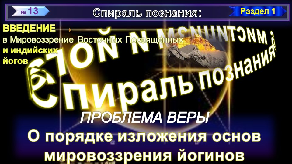 (13) О ПОРЯДКЕ ИЗЛОЖЕНИЯ ОСНОВ МИРОВОЗЗРЕНИЯ ЙОГИНОВ - ПРОБЛЕМА ВЕРЫ - СПИРАЛЬ ПОЗНАНИЯ