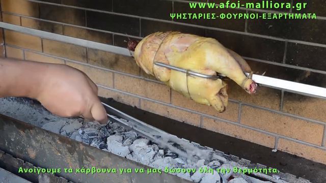 Ψήσιμο κοτόπουλου στην σούβλα στην ψησταριά, δείτε πως ανάβουμε τα κάρβουνα, εύκολα, γρήγορα και χωρίς καπνό. Επισκεφθείτε το bbq forum στην σελίδα μας www.afoi-malliora.gr και ελάτε στην παρέα μας να μοιραστείτε μαζί μας τις εμπειρίες σας στο ψήσιμο στην ψησταριά και τον παραδοσιακό φούρνο!!
