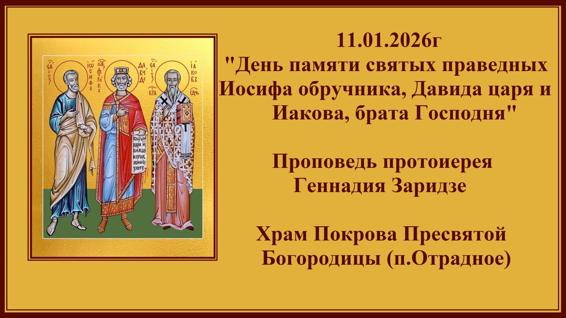 11.01.2026г "День памяти святых праведных Иосифа обручника, Давида царя и Иакова, брата Господня"