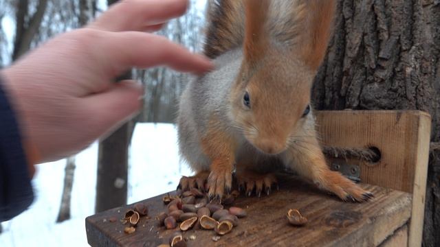 Покормил взрослую белку
