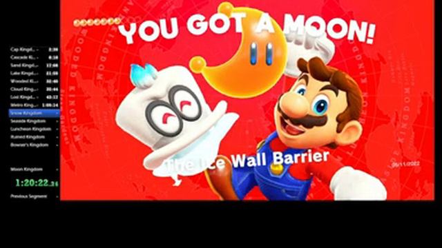 I only know the speedrun route up until cloud kingdom, in which I had to improvise and use my only game knowledge and movement to continue from there. I made a lot of movement mistakes including bonking and especially dying. I also was button mashing too quickly at the selection for seaside/snow so had to switch my livesplit timer names to match. I had to go afk in Bowser's kingdom for several minutes and got distracted by my two noisy cats during the end scene and nearly broke my controller on the third death as Bowser. Also had to take a few seconds between kingdoms or cutscenes to review some of the speedrun route. Overall I am happy with how the first half of the run turned out for a first official run and will practice a bit more before i try again - learning the second half of the route will definitely be the next objective before doing another timed run. Credit to SmallAnt for the speedrun route for beginners: https://youtu.be/Bg1ybu2aAwc?t=1 Credit to R4b70 for the moon-skip: https://youtu.be/KqD2aDys6tc?t=1
