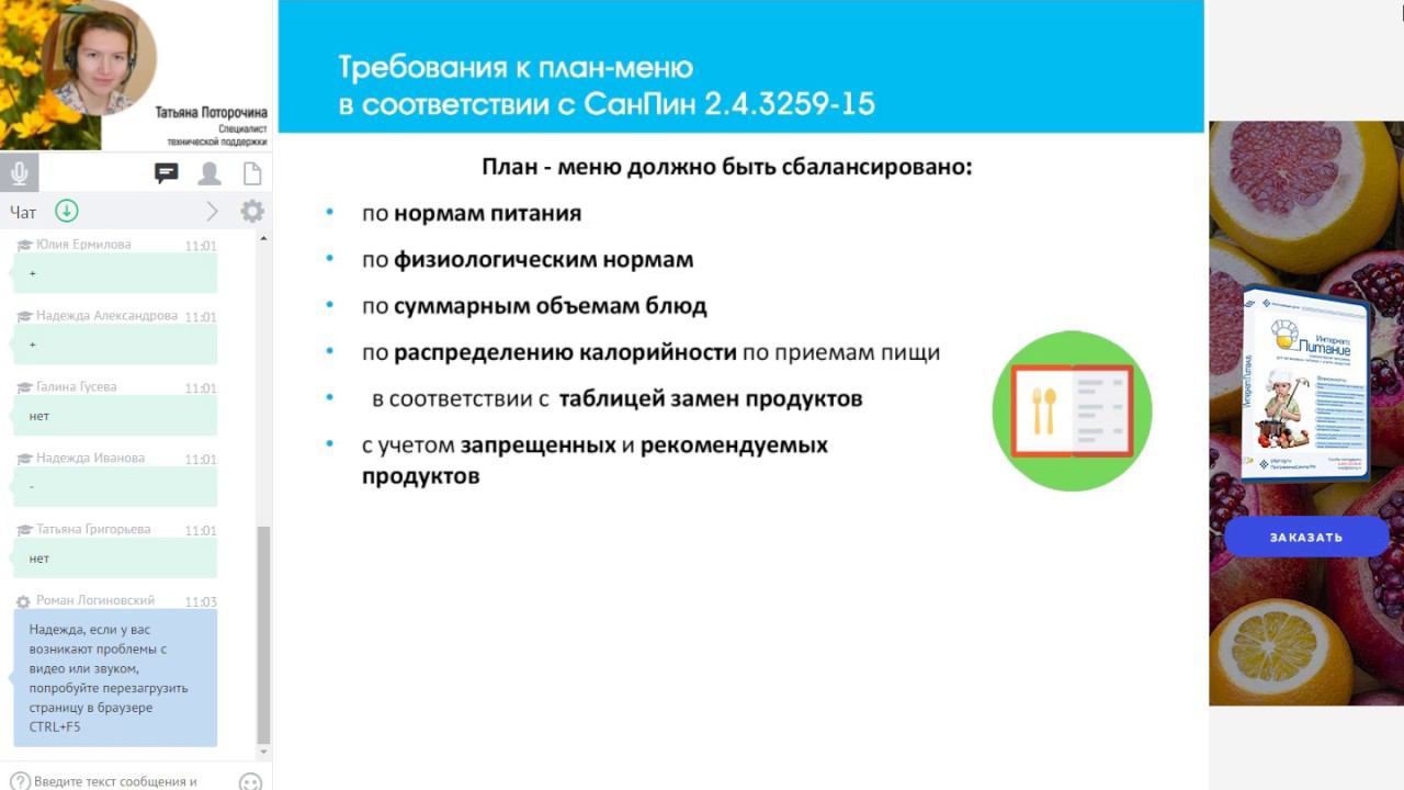 Вебинар по программе для организации сбалансированного питания детей, обзор требований нового СанПиН 2.4.3259-15.
