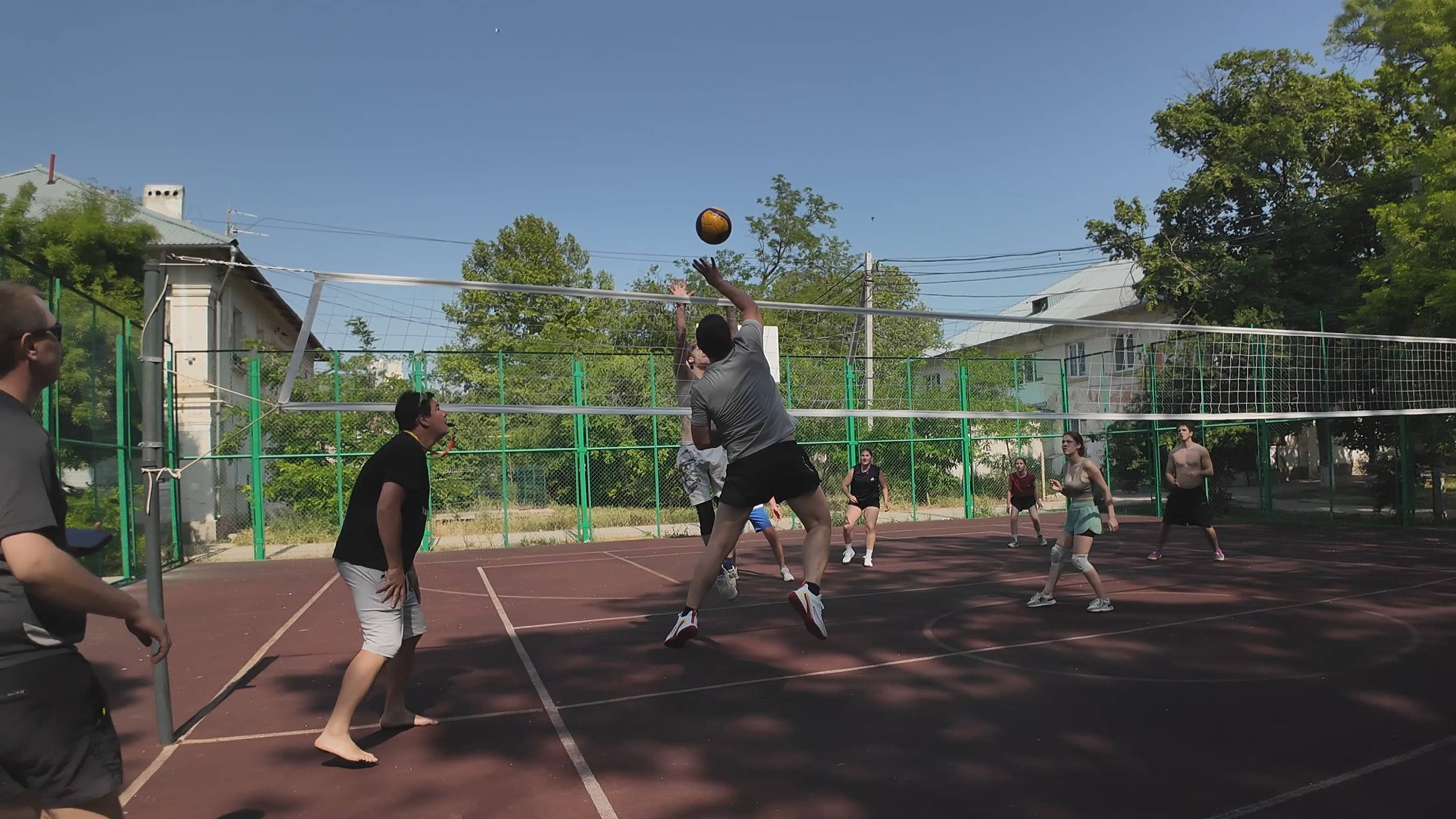 Касание сетки на турнире по волейболу.