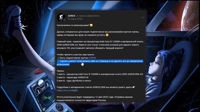 Обзор розыгрыша ВК №174 В этом видео расскажу о розыгрыше Мощной основы для игрового ПК! ✅ Подписывайся и включай "Все" уведомления?, чтобы не пропускать новых обзоров розыгрышей! ✅ Подписывайся на группу ВК (уведомления и итоги): https://vk.com/evictv ❤️ Поддержать канал: https://www.donationalerts.com/r/evictv ? Призы: 1 место - процессор Intel Core i5 12600K и материнская плата Z690 AORUS Elite AX. 2 место - гарнитура AORUS H5. 3 место - худи, футболка и кепка. ? Музыка из видео: Prod. by Cxdy (The Kid LAROI x Lil Mosey Type Beat - "RIGHT"). ? Для предложений и сотрудничества: evictv96@gmail.com #РозыгрышПризов #Розыгрыш #РозыгрышПК