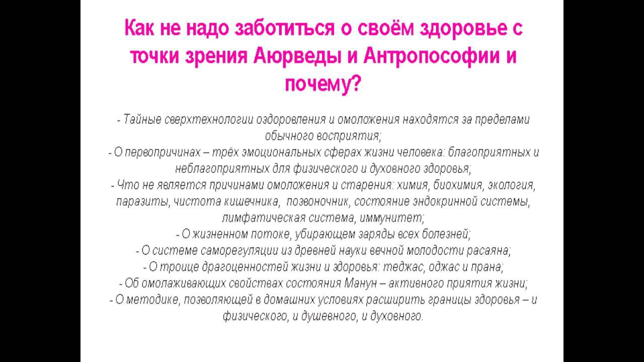 МАНУН Как не надо заботиться о своём здоровье с точки зрения Аюрведы и Антропософии и почему?