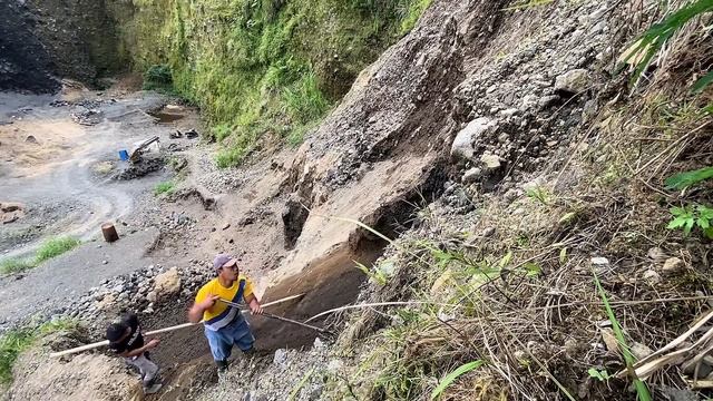 Строительство, шахтёры рискуют , можно попасть под оползень
