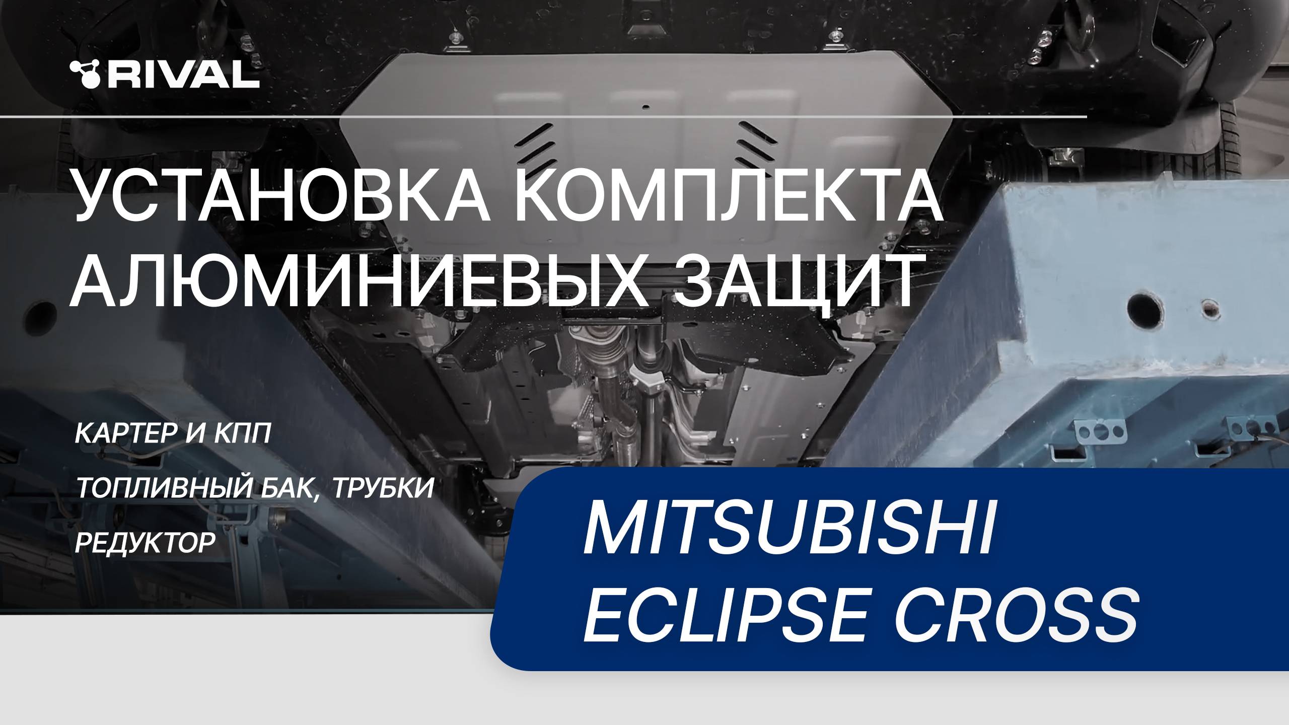 Видеоинструкция по установке комлекта алюминиевых защит на Mitsubishi Eclipse Cross. 333.4050.1 Защита картера + КПП + комплект крепежа, RIVAL, Алюминий, Mitsubishi Eclipse Cross 2018-, V — 1.5T; привод — все 333.4051.1 Защита топливного бака + редуктора + комплект крепежа, RIVAL, Алюминий, Mitsubishi Eclipse Cross 2018-, V — 1.5T; полный привод 333.4039.1 Защита топливных трубок + комплект крепежа, RIVAL, Алюминий, Mitsubishi Eclipse Cross 2018-, V — 1.5T; привод — все