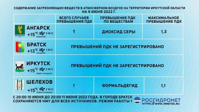[10.06.2022] Мониторинг состояния атмосферного воздуха за 09.06.2022