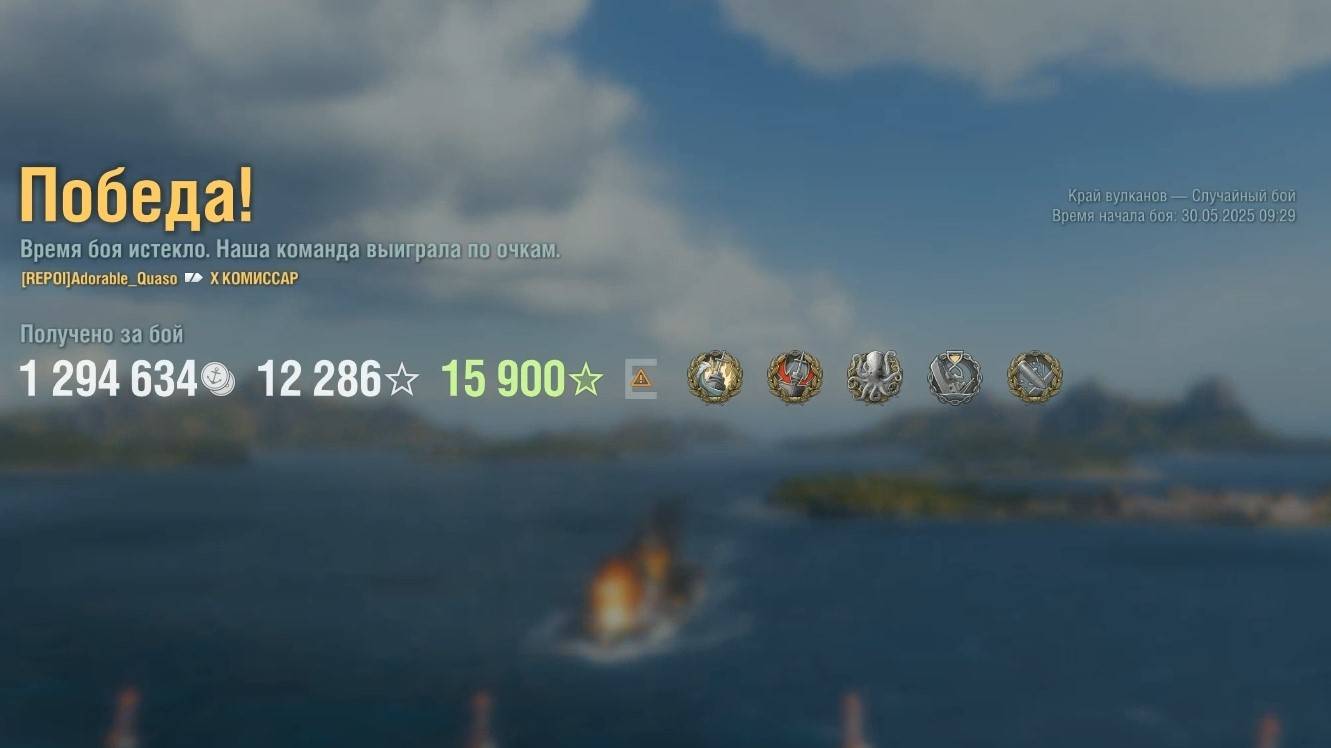 Крейсер Komissar: +345к урона 6 фрагов на карте Край вулканов - World of Warships
