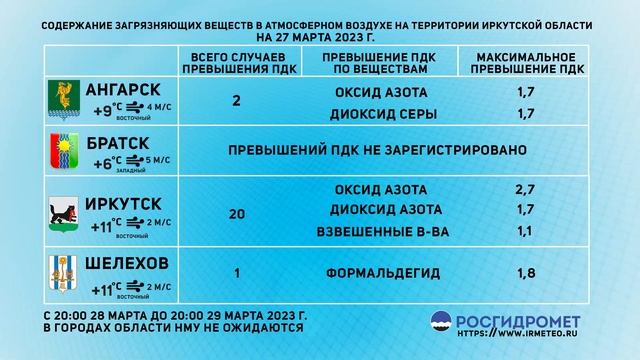 [28.03.2023] Мониторинг состояния атмосферного воздуха на 27.03.2023