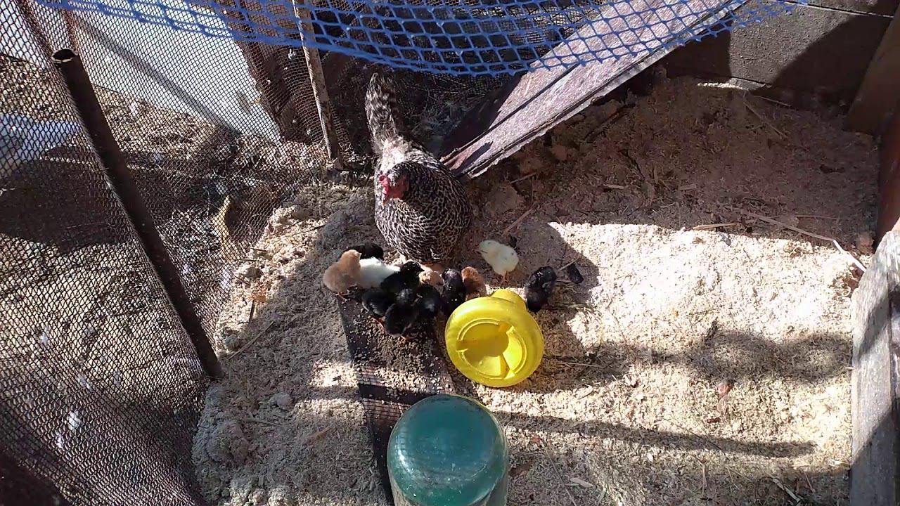 Теперь наша курочка с цыплятами временно будет жить в полесаднике.