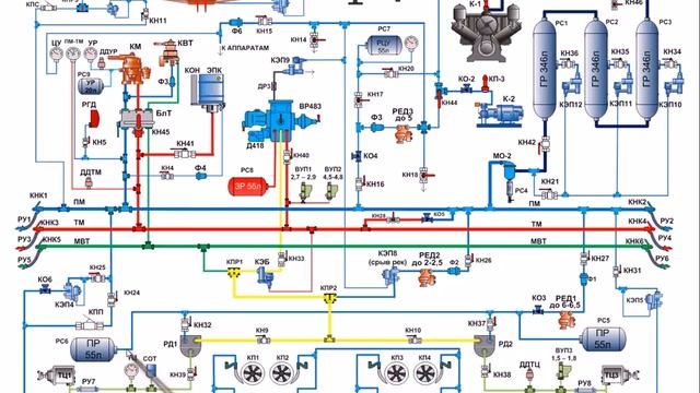 Пневматическая схема ВЛ10к торможение и отпуск