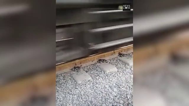 Видео не для слабонервных! Пес уснул на железнодорожном полотне.