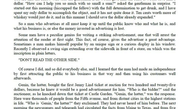 Art Of Money Getting by P.T. Barnum Reprint for free from www21to21.com. This is the classic book from P.T. Barnum of Circus fame and fortune that covers basically what every single book on making money that has been published since then covers. Free PDF.