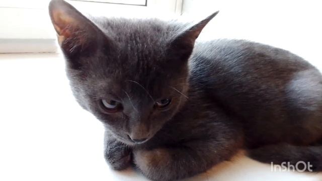 Засыпает бедный котенок, устал.