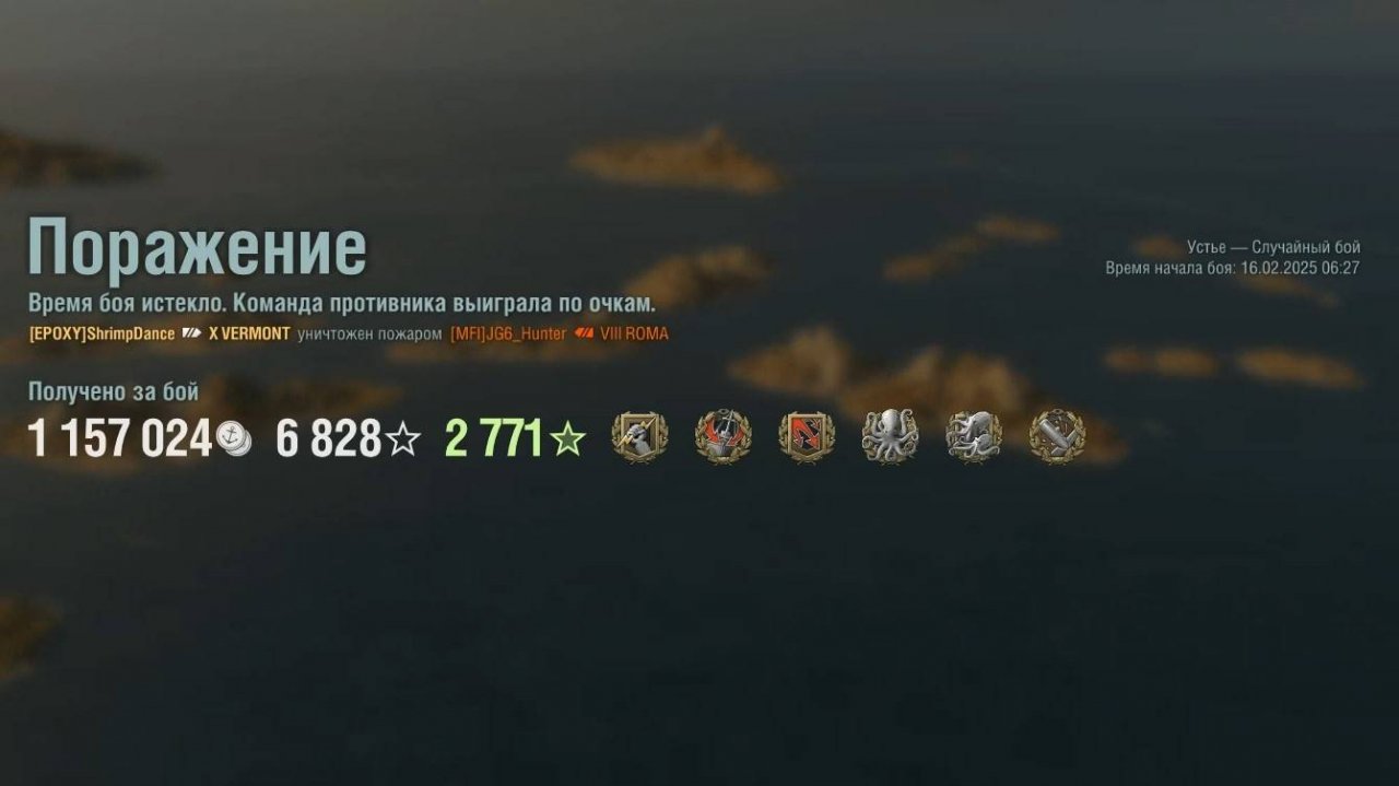 Линкор Vermont. Игрок: ShrimpDance (NA). Карта: Устье - Случайный бой. Урон: 277к. Vermont - Линкор США 10 уровня.