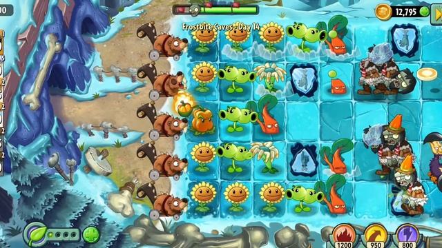 Растения против зомби 2. Замороженные пещеры. День 14.