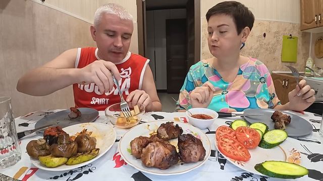 Мукбанг ОТМЕТИЛИ моё преображение) ОБЪЕДАЕМСЯ шашлыка от ПУЗА) Семейный ужин в России