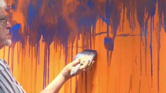 Rolf Harris paints giant picture at Birmingham art gallery