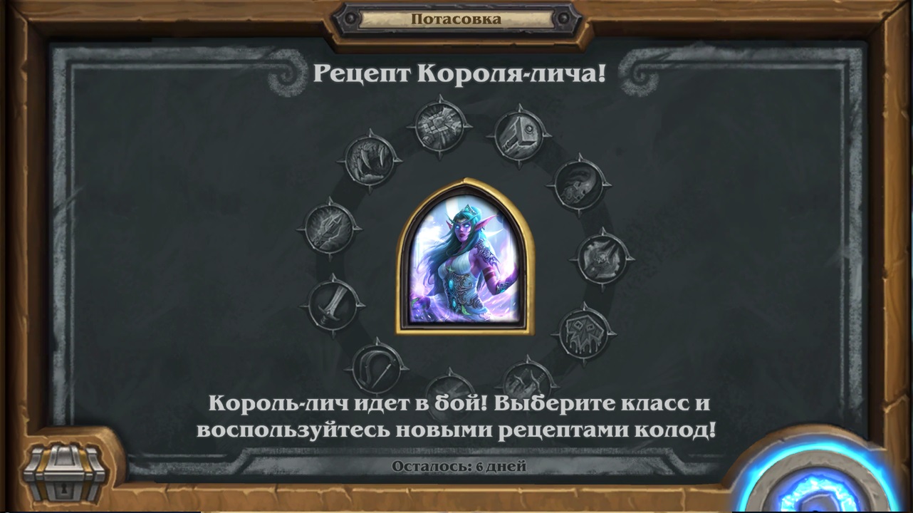 Потасовка в Hearthstone, в период с 07.12.2022 - 14.12.2022 Потасовка: Рецепт Короля-лича! Король-лич идет в бой! Выберите класс и воспользуйтесь новыми рецептами колод!