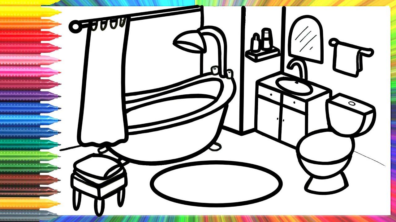 How to draw a bathroom for children/Cara menggambar kamar mandi untuk anak-anak