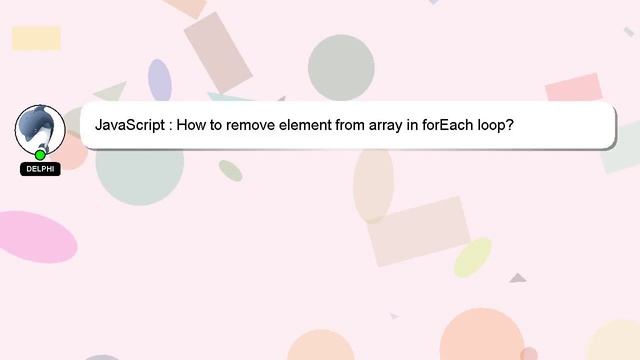 JavaScript : How to remove element from array in forEach loop? To Access My Live Chat Page, On Google, Search for "hows tech developer connect" I promised to share a hidden feature with you, and here it is. This is a YouTube's feature which works on Desktop. First, Make sure the video is currently in playing mode. Next, enter the letters 'awesome' on your keyboard. The progress bar on YouTube will be altered to a flashing rainbow. Let me give you a quick introduction about myself, Hey, I'm known as Delphi. Let me assist you in answering any questions you may have. JavaScript : How to remove element from array in forEach loop? If you need more specific answers, please reach out to me through comments or chat. If you have an answer or any relevant information to share, please comment below. A 'heart' from me will be given as a sign of appreciation for your answer. : JavaScript array loop? remove in element forEach from How to