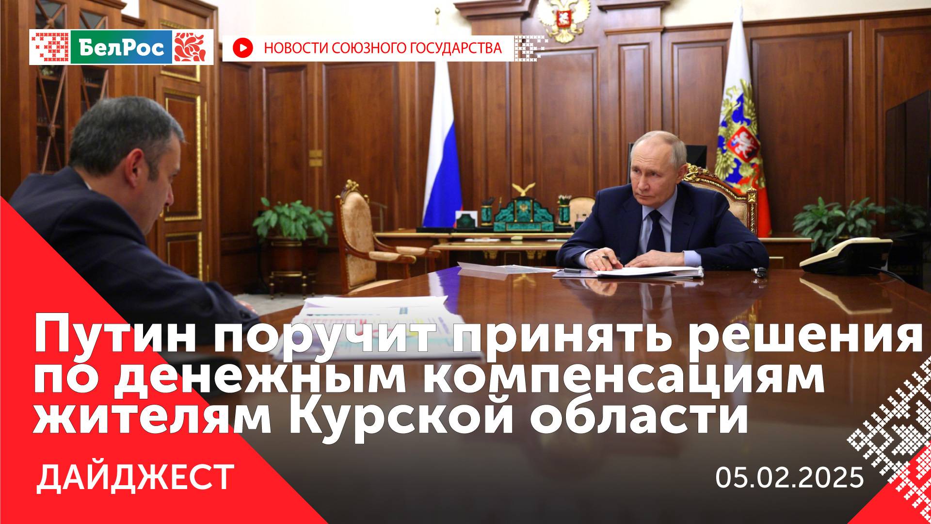 *Главное на 5 февраля 21:00* Закадровый текст озвучивает *ИИ Антон* - Владимир Путин поручил увеличить денежные компенсации жителям Курской области. - Кремль не комментирует заявления Трампа об урегулировании украинского конфликта. - Взрыв в ЖК "Алые Паруса" исполнил смертник. - Россия играет ведущую роль в обеспечении глобальной продовольственной безопасности. - Сборные России и Беларуси по хоккею отстранили от участия в чемпионате мира в 2026 году. - Мишустин: за год рост ВВП России составил около 4%. - Захарова: заявление Зеленского о желании обладать ядерным оружием выдают в нём маньяка. - Пятисотый трамвай выпущен с конвейера "Белкоммунмаш". - В Хабаровском крае планируют запустить белорусский электротранспорт. - Участники международного автопробега посетили Гомельскую область. - В Беларуси рассмотрели Национальную стратегию устойчивого развития до 2040 года. - 150 российских военных вернулись с подконтрольной киевскому режиму территории. - Почти 2000 участников представляют свою продукцию на крупнейшей выставке "Продэкспо". - Выставка инфраструктуры гражданской авиации открылась в Москве. - Онищенко: заявления о необходимости выхода России из ВОЗ делают непрофессионалы. - "Восток" уничтожили украинских боевиков на Южно-Донецком направлении. - Минздрав: здоровью детей, раненых при атаке ВСУ в Запорожье, ничего не угрожает. - Ивановские десантники уничтожили группу пехоты ВСУ в районе Часов Яра. Смотрите главные новости Союзного государства на телеканале БелРос. Ссылки на наши соц. сети Сайт: http://belros.tv/ Telegram: https://t.me/belrostv Одноклассники: https://ok.ru/group/55657426976918 ВКонтакте: https://vk.com/belrostv TikTok: https://www.tiktok.com/@belros_tv?_t=... RuTube: https://rutube.ru/channel/23501830/ Яндекс. Дзен: https://zen.yandex.ru/belrostvv Наши подкасты на Яндекс. Музыке: https://music.yandex.ru/album/25615251 #СоюзноеГосударство #главныеновости #новостисегодня