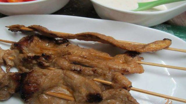 Свинина гриль на шпажках с соусом